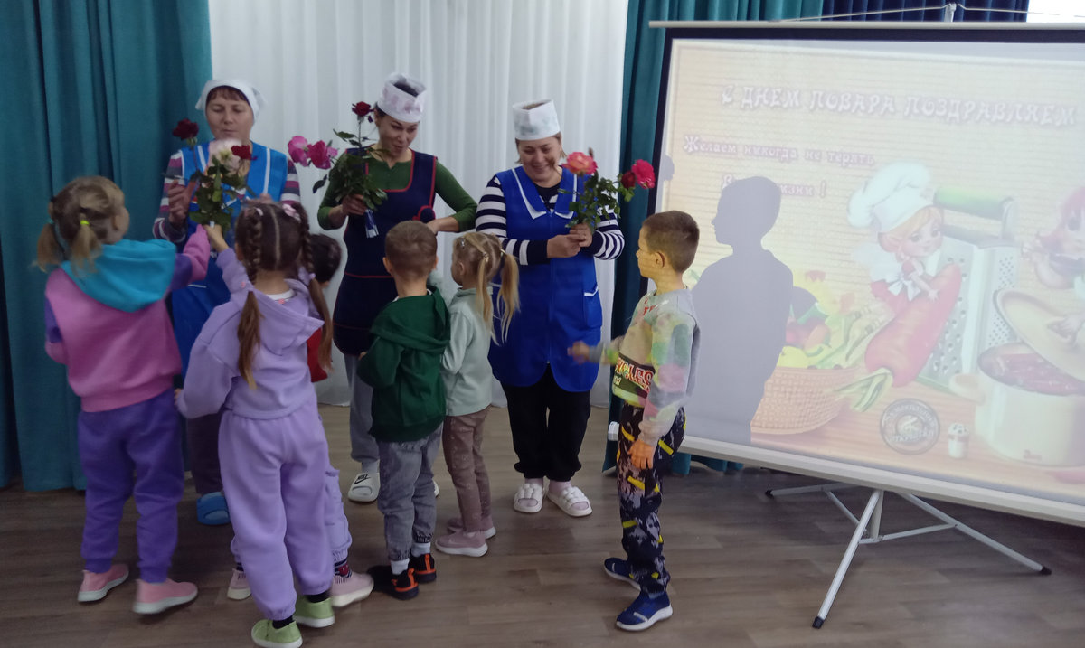 Сегодня, 20 октября, в нашем детском саду празднуется Международный день повара! Мы с ребятами подготовили поздравление для наших замечательных поваров на кухне, поблагодарили поваров за их терпение и труд, благодаря которым мы каждый день наслаждаемся вкусными и полезными блюдами!