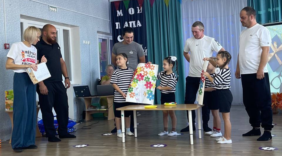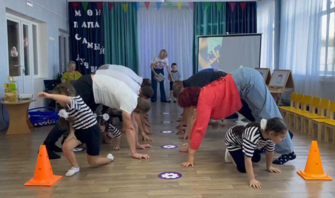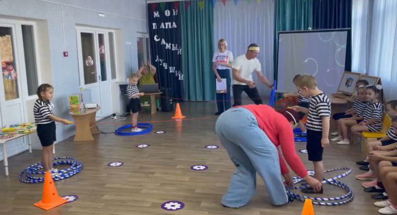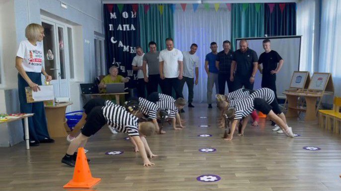 Дети с большим восторгом поддерживали пап, с какой же радостью в глазах они смотрели, как папы выполняют задания- не передать словами.