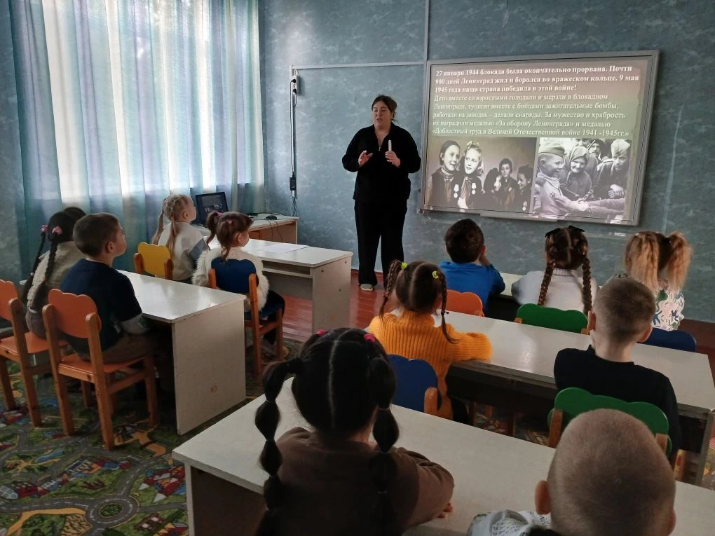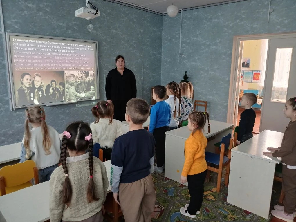 27 января, в день снятия блокады Ленинграда, в старшей группе "Золотая рыбка" были проведены мероприятия, приуроченные к этой важной дате.